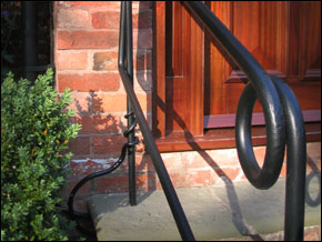 Inspired by eastern calligraphy, Adrian created a pair of elegant handrails – simple and beautiful in their style. They incorporate drawn down wraps, loops and circles all in one-inch thick solid bar. |