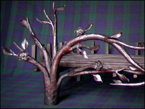 Commissioned to create a log basket for clients who were renovating Orchard Cottage, Adrian wanted to design something that reflected the house’s history; his inspiration was the apple trees that surrounded it. Marked trunks support branches adorned with apple blossom and new leaves. So even on the coldest nights, with the fire blazing, there’s a reminder that spring is just around the corner. |